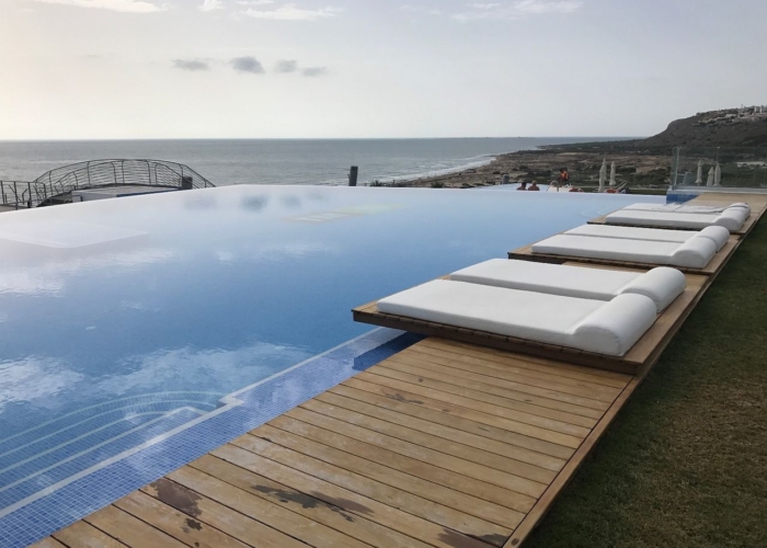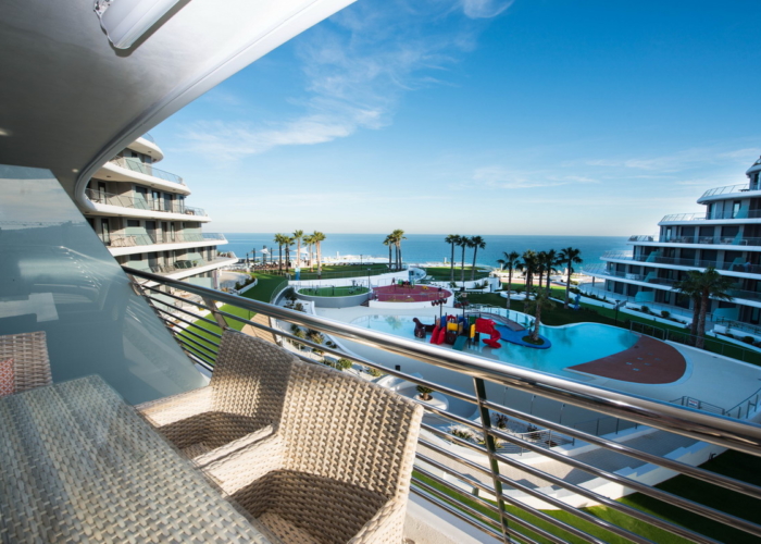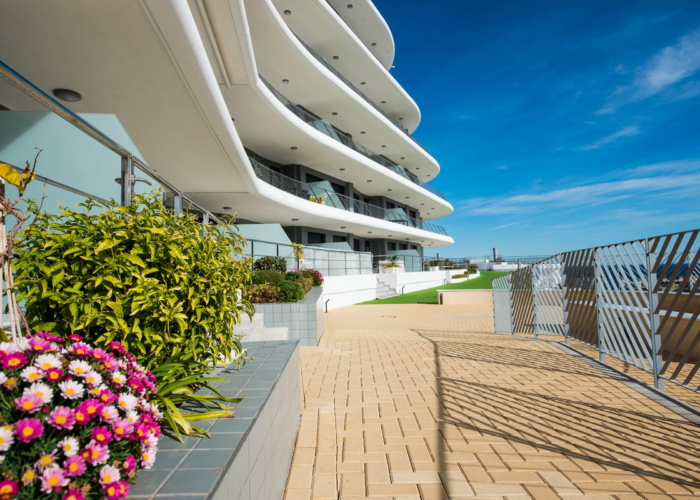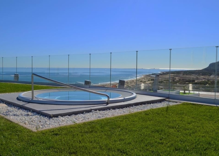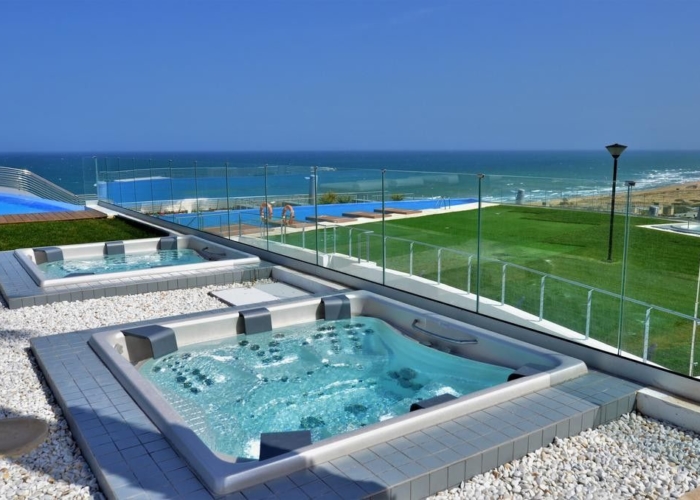 New modern complex with 2 outdoor swimming pools, 1 of which is heated in winter and pool bar. Yaccuzi, sauna and hammam. Fitness, tennis, paddle and basketball court.
